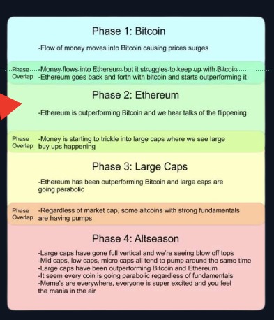 The four-phase flow (from Bitcoin to “everything pumps”)